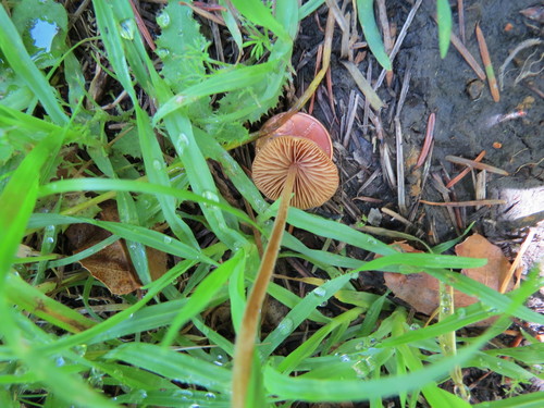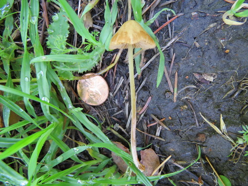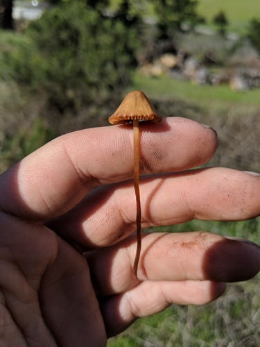 Der 1–4 cm breite Hut ist braun-orange-gelb-rot gefärbt. Die Form ist meist kegelförmig, andere, schirmförmig, geriefter Hut. Er ist hygrophan (Die Hutfarbe ändert sich bei Feuchtigkeit).