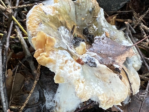 Die Unterseite zeigt Farben von weiß/gelb. Sie sind angewachsen, herablaufend.