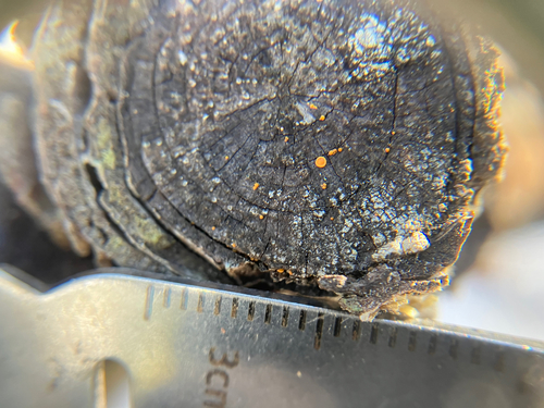 Die Unterseite zeigt Farben von rot/orange/gelb/braun.