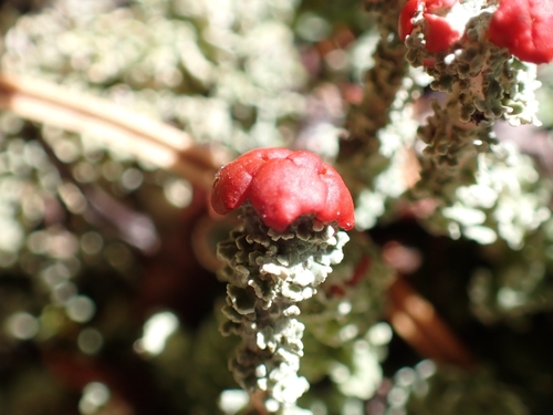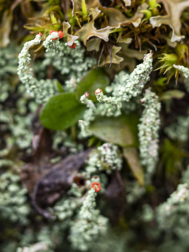 Der Schönfrüchtige Scharlachflechte (Cladonia bellidiflora) ist ein Pilz mit dem Speisewert ungenießbar. Die Hauptsaison erstreckt sich von Januar bis Dezember. Er wächst bevorzugt auf Holz, Boden.