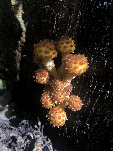 Die Unterseite zeigt Farben von rosa/braun/grün/rot/weiß/gelb. Sie sind angewachsen.