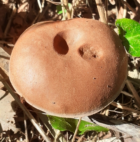 Der 2–14 cm breite Hut ist orange-braun gefärbt. Die Form ist meist schirmförmig, andere, kegelförmig. Er ist hygrophan (Die Hutfarbe ändert sich bei Feuchtigkeit).