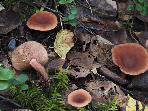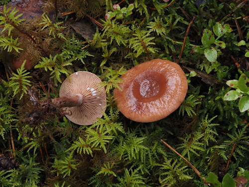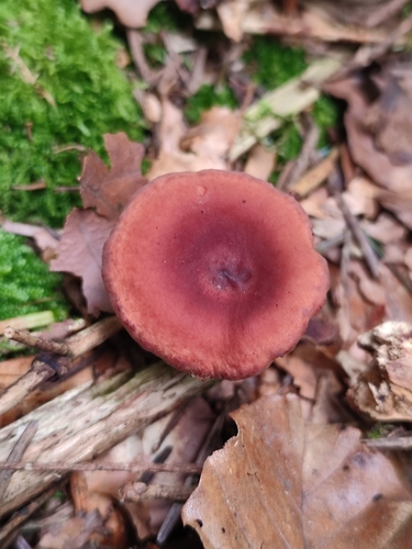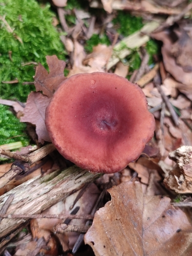 Der 2–10 cm breite Hut ist braun-rot-orange-rosa gefärbt. Die Form ist meist trichterförmig, andere, kegelförmig. Er ist hygrophan (Die Hutfarbe ändert sich bei Feuchtigkeit).