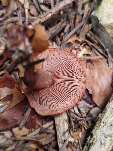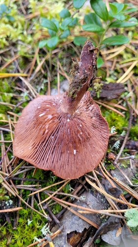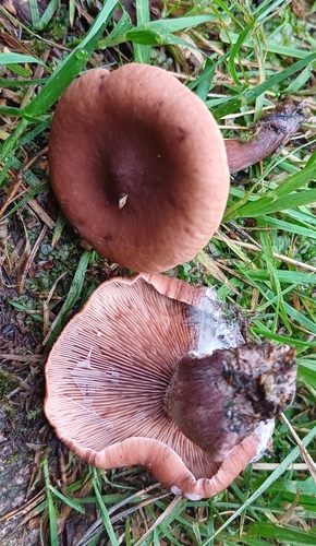 Die Unterseite zeigt Farben von rot/orange/braun/rosa. Sie sind angewachsen.