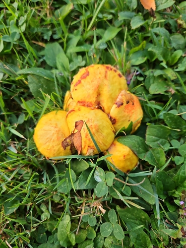 Die Unterseite zeigt Farben von gelb/orange. Sie sind herablaufend, angewachsen.