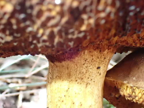 Der Stiel ist gelb-braun. Besondere Merkmale: faserig, Wurzelbasis.