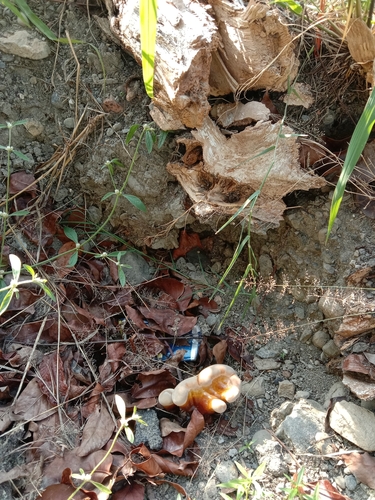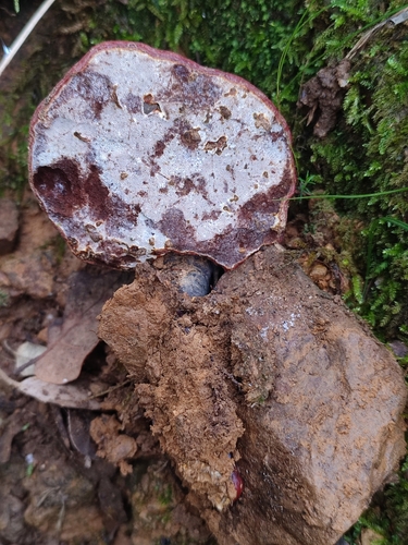 Der Stiel ist rot-weiß-schwarz-braun. Besondere Merkmale: faserig.