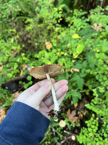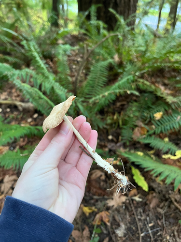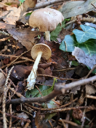 Der Stiel ist weiß-braun-gelb. Besondere Merkmale: faserig, Wurzelbasis.