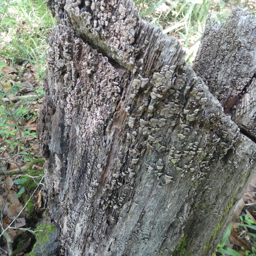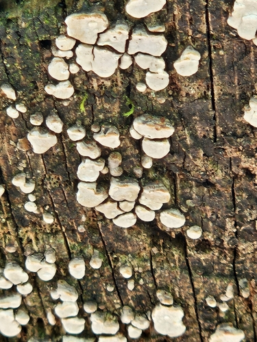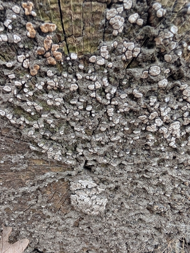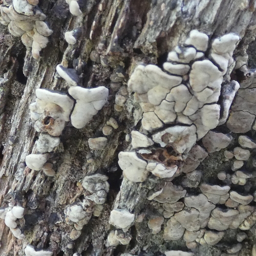 Der Mosaikschichtpilz (Xylobolus frustulatus) ist ein Pilz mit dem Speisewert ungenießbar. Die Hauptsaison erstreckt sich von Januar bis Dezember. Er wächst bevorzugt auf Holz.