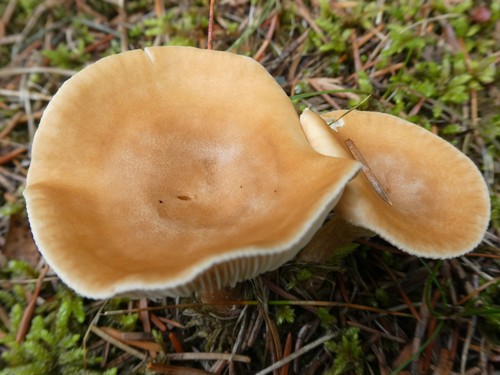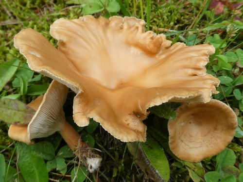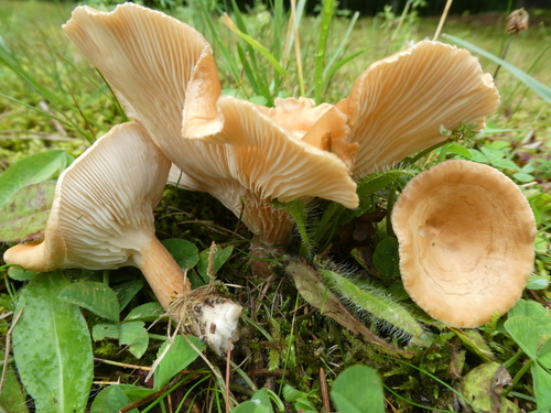 Der 2–11 cm breite Hut ist braun-orange gefärbt. Die Form ist meist trichterförmig, andere, schirmförmig.