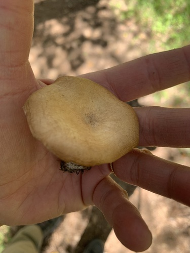 Die Unterseite zeigt Farben von weiß/gelb. Sie sind angewachsen, herablaufend.