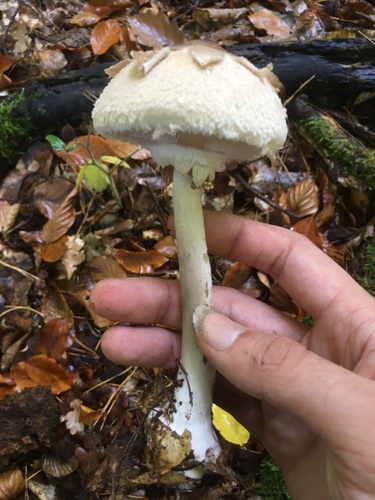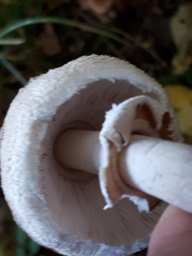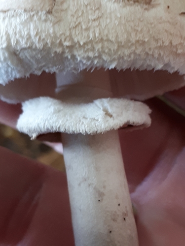 Der Stiel ist braun-weiß-rot. Besondere Merkmale: Ring, flocken, hohl, genattert, faserig.