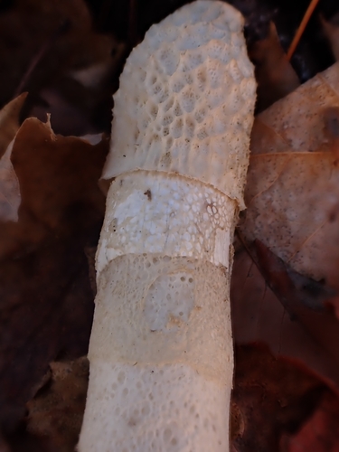 Der Stiel ist weiß. Besondere Merkmale: brüchig, hohl, flocken.