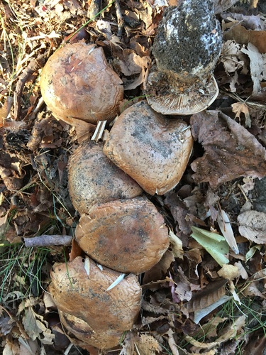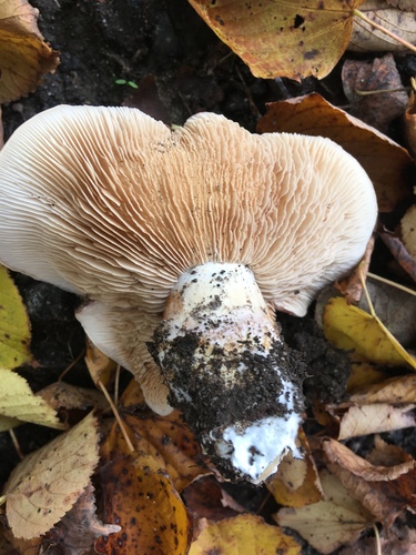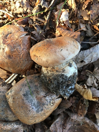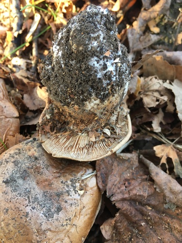 Der Stiel ist weiß-braun-blau-gelb. Besondere Merkmale: knollige Basis, genattert.