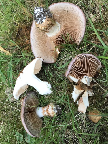 Die Unterseite zeigt Farben von weiß/braun/grau/rosa/rot. Sie sind angewachsen, frei.