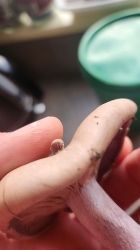 Die Unterseite zeigt Farben von rosa/blau/weiß/grau. Sie sind angewachsen.