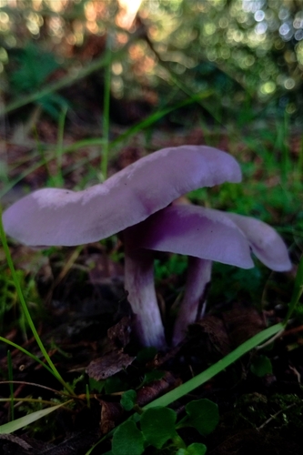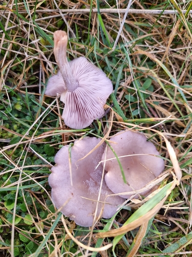 Der 2–8 cm breite Hut ist grau-braun-weiß-blau-rosa gefärbt. Die Form ist meist schirmförmig, andere, trichterförmig. Er ist hygrophan (Die Hutfarbe ändert sich bei Feuchtigkeit).