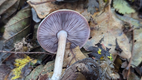 Der Stiel ist grau-weiß-braun-blau. Besondere Merkmale: flocken, faserig, hohl, Wurzelbasis.