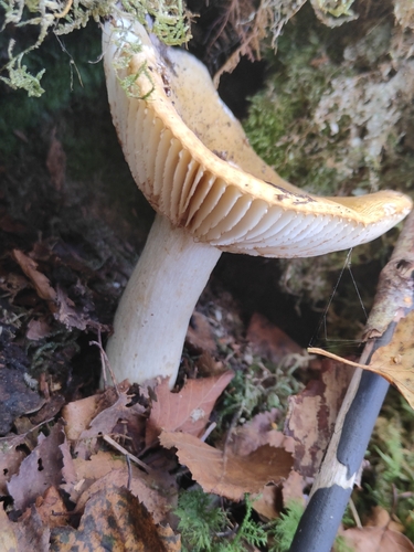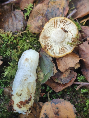 Der Stiel ist gelb-weiß-braun. Besondere Merkmale: brüchig, hohl.