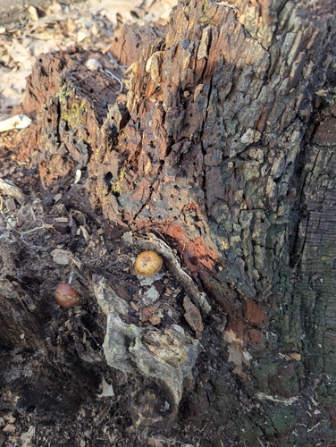 Der Stiel ist braun-orange-gelb-rot-weiß. Besondere Merkmale: Ring, faserig, flocken, Wurzelbasis, hohl, genattert.