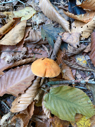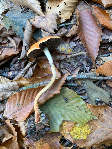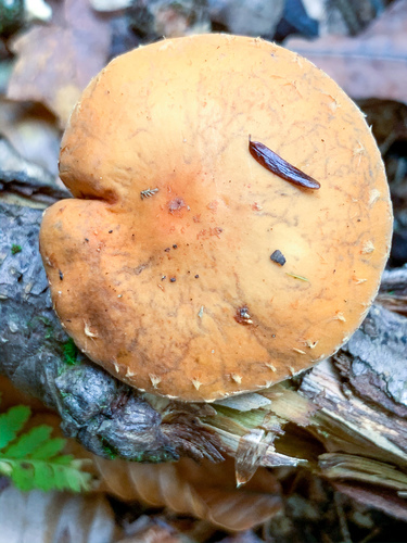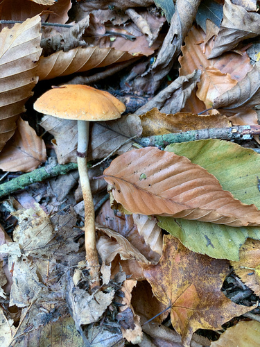 Der 2–10 cm breite Hut ist braun-gelb-orange gefärbt. Die Form ist meist schirmförmig, andere. Er ist hygrophan (Die Hutfarbe ändert sich bei Feuchtigkeit).