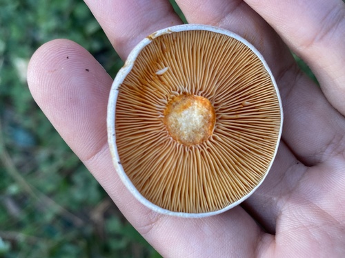 Die Unterseite zeigt Farben von orange/rot. Sie sind angewachsen.