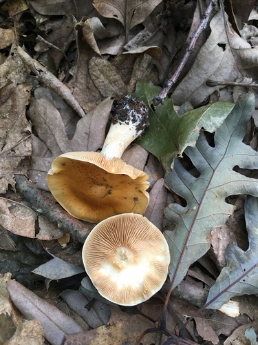 Der Stiel ist weiß-braun. Besondere Merkmale: knollige Basis, faserig, genattert.