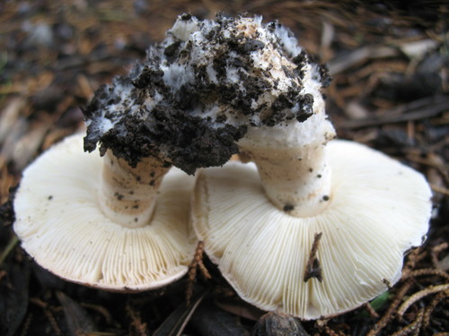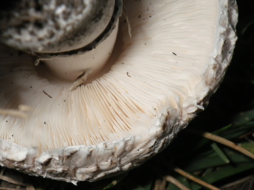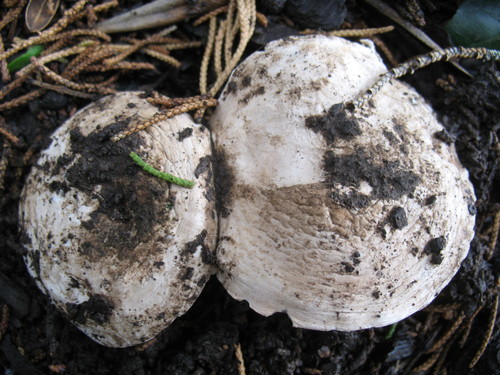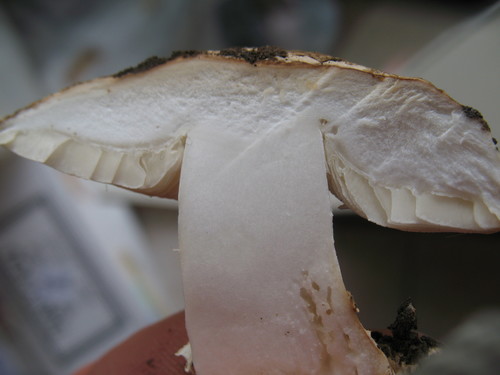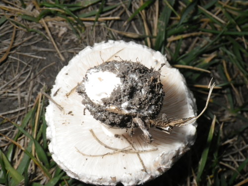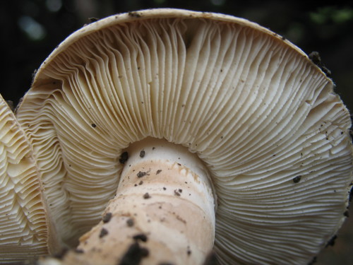 Der Stiel ist weiß. Besondere Merkmale: Ring, Wurzelbasis, hohl, flocken, knollige Basis.