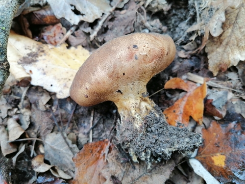 Der Stiel ist braun-gelb-weiß. Besondere Merkmale: brüchig, Wurzelbasis.