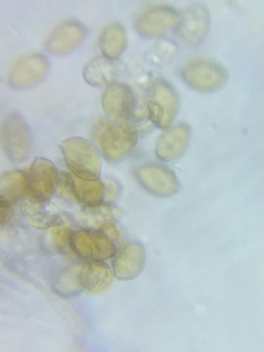 Er hat einen andere, milden Geschmack. Das Sporenpulver ist braun, rot, gelb.