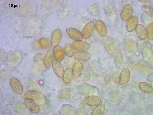Er hat einen milden Geschmack. Das Sporenpulver ist gelb, braun.