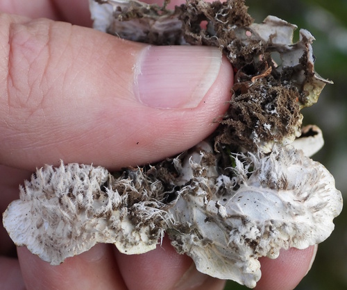 Der 1–25 cm breite Hut ist blau-grau gefärbt.