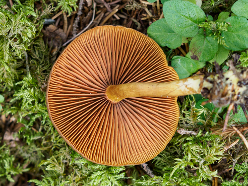 Die Unterseite zeigt Farben von gelb/braun/orange. Sie sind angewachsen.