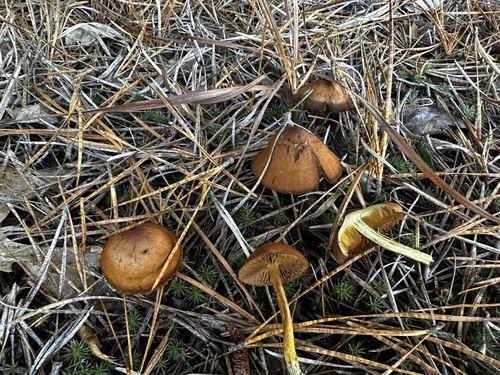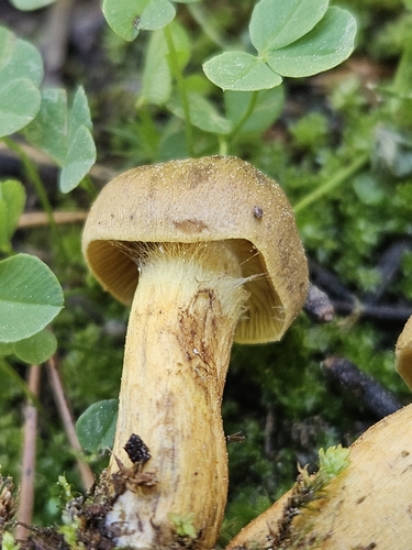 Der 1–7 cm breite Hut ist braun-gelb gefärbt. Die Form ist meist andere, kegelförmig, schirmförmig.