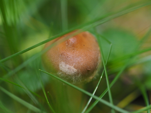 Der 2–10 cm breite Hut ist braun-weiß-rot-gelb gefärbt. Die Form ist meist kegelförmig, andere, schirmförmig. Er ist hygrophan (Die Hutfarbe ändert sich bei Feuchtigkeit).