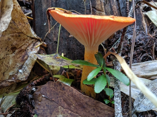 Die Unterseite zeigt Farben von weiß/gelb. Sie sind angewachsen, herablaufend.