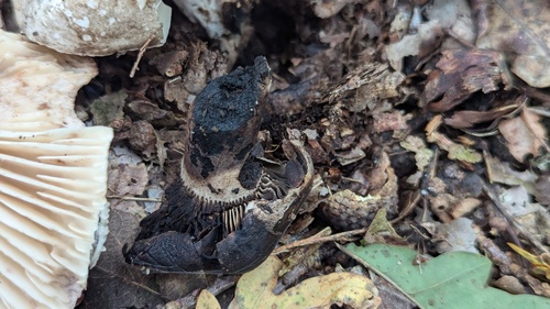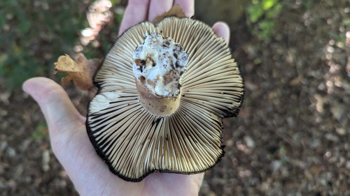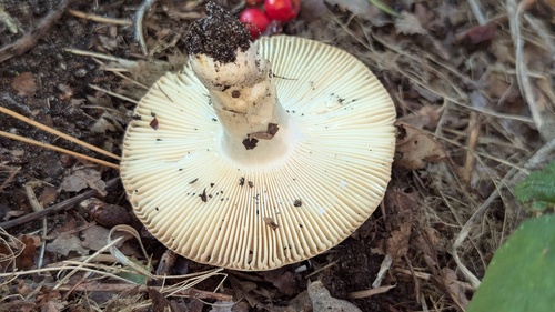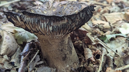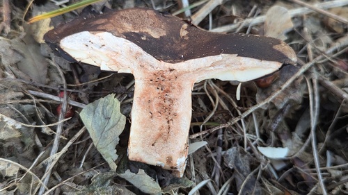 Der Stiel ist weiß-braun-schwarz. Besondere Merkmale: brüchig.