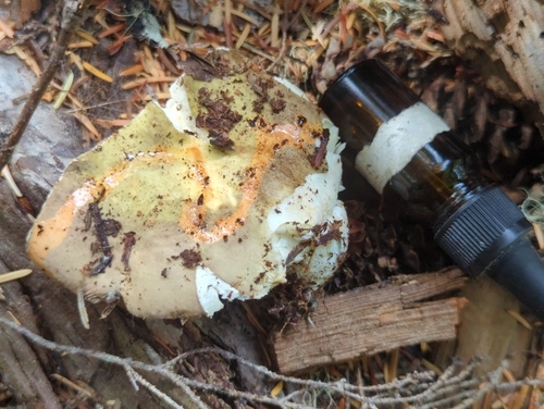 Er hat einen mild, scharfen Geschmack. Das Sporenpulver ist gelb.