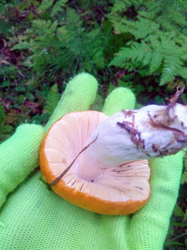 Der Orangeroter Graustiel-Täubling (Russula decolorans) ist ein Pilz mit dem Speisewert ausgezeichnet. Die Hauptsaison erstreckt sich von Juni bis November. Er wächst bevorzugt auf Boden.
