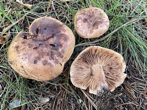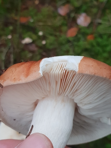 Die Unterseite zeigt Farben von weiß/braun. Sie sind angewachsen, frei.