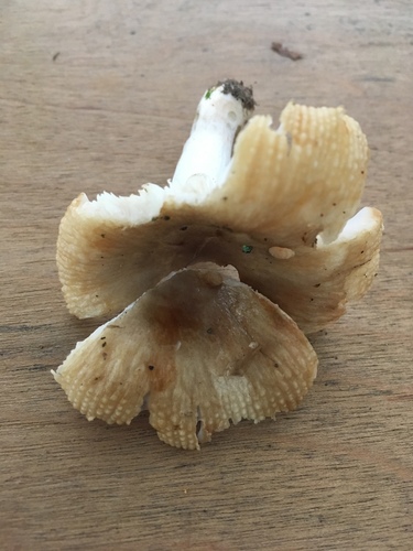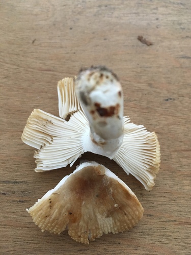 Die Unterseite zeigt Farben von weiß/gelb. Sie sind angewachsen.
