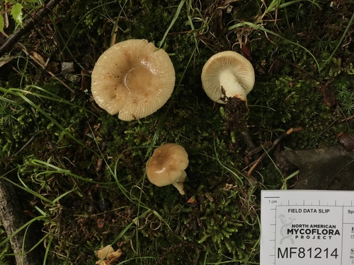 Der 2–9 cm breite Hut ist gelb-braun gefärbt. Die Form ist meist schirmförmig, andere, trichterförmig, kegelförmig, geriefter Hut. Er ist hygrophan (Die Hutfarbe ändert sich bei Feuchtigkeit).
