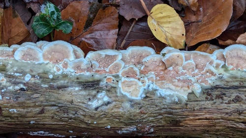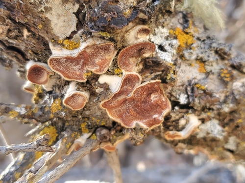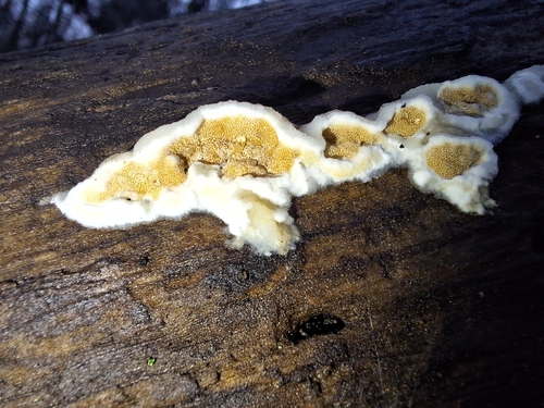 Der Zweifarbiger Knorpelporling (Gloeoporus dichrous) ist ein Pilz mit dem Speisewert ungenießbar. Die Hauptsaison erstreckt sich von Januar bis Dezember. Er wächst bevorzugt auf Holz.