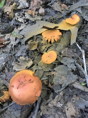 Der 1–5 cm breite Hut ist orange-gelb-braun-rot gefärbt. Die Form ist meist kegelförmig. Er ist hygrophan (Die Hutfarbe ändert sich bei Feuchtigkeit).