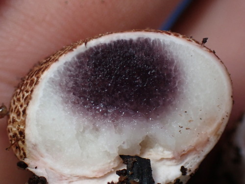 Der Stiel ist weiß. Besondere Merkmale: Wurzelbasis, brüchig.