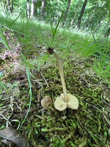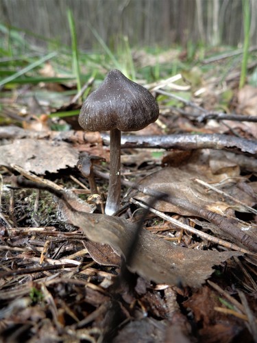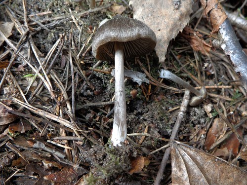 Der 1–7 cm breite Hut ist braun-grau-weiß-rosa gefärbt. Die Form ist meist schirmförmig, andere, kegelförmig, geriefter Hut. Er ist hygrophan (Die Hutfarbe ändert sich bei Feuchtigkeit).