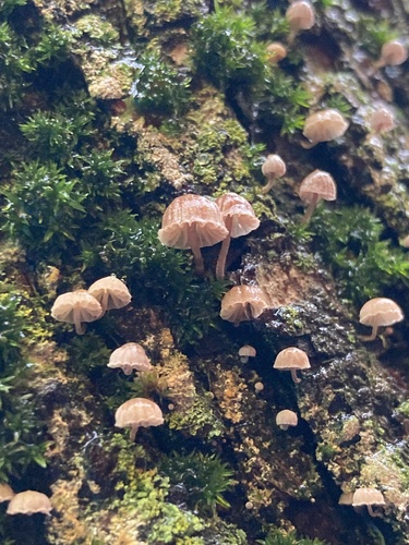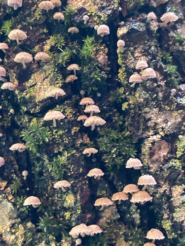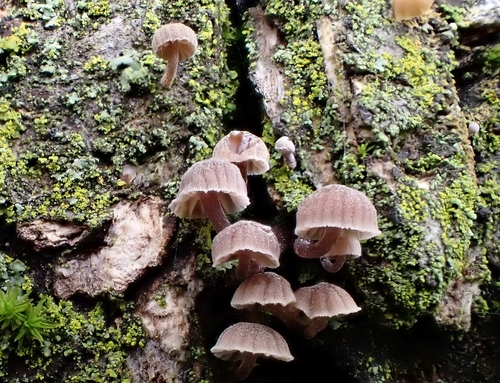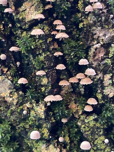 Die Unterseite zeigt Farben von weiß/gelb/rot/rosa. Sie sind angewachsen.
