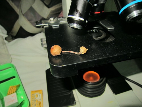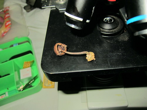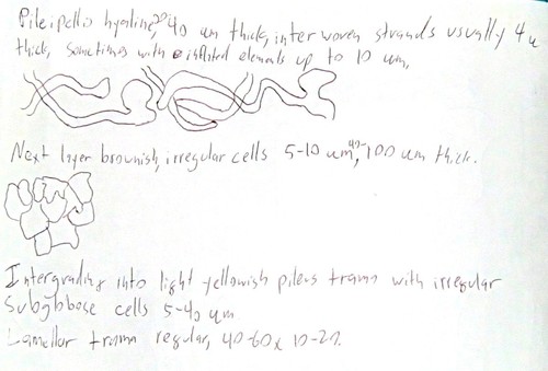 Der Stiel ist blau-schwarz-braun. Besondere Merkmale: flocken, faserig, knollige Basis, Wurzelbasis.