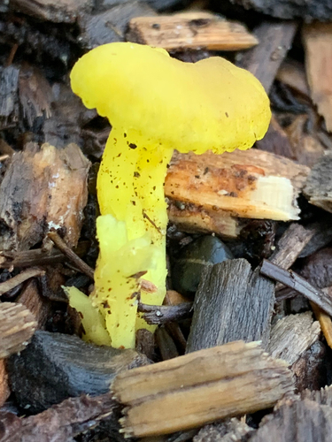 Der 1–4 cm breite Hut ist orange-rot-grün-braun-gelb gefärbt. Die Form ist meist trichterförmig. Er ist hygrophan (Die Hutfarbe ändert sich bei Feuchtigkeit).