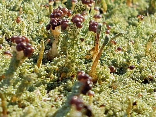 Der Eichen-Säulenflechte (Cladonia parasitica) ist ein Pilz mit dem Speisewert ungenießbar. Die Hauptsaison erstreckt sich von Januar bis Dezember. Er wächst bevorzugt auf Boden, Holz.